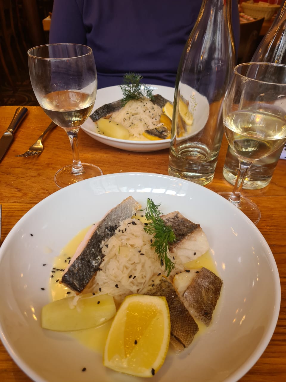 ‘Ole ole olá….” agora aceitam cartões de crédito, aliás, preferem cartão em lugar de dinheiro vivo. Comida continua excelente e o preço super legal. Almoçamos por 15,50 euros cada com prato principal + entrada ou prato + sobremesa. Cada um de nós pediu um tipo de menu ‘pour partager’. Claro que , para acompanhar um ‘pichet’ de meio litro de Sauvignon blanc.