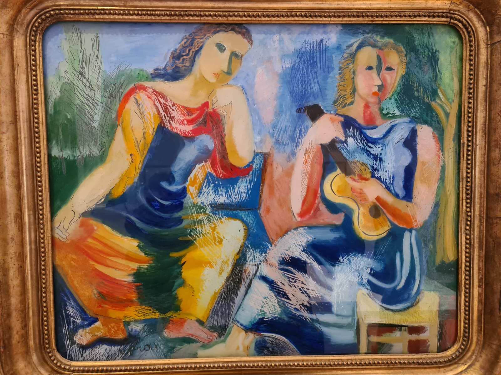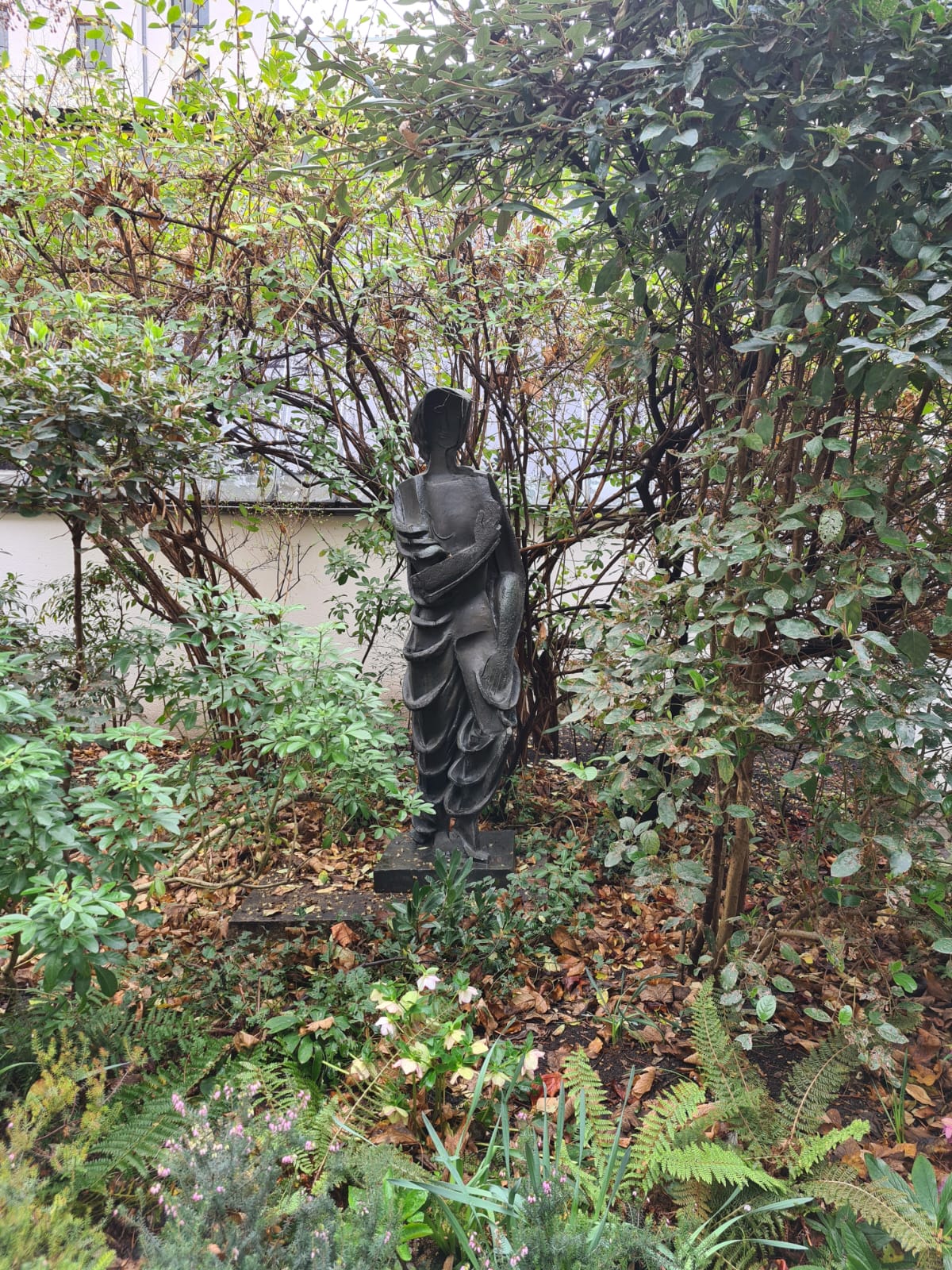 Chuva parou as 9h00, o céu abriu num azul lindo e até o Sol sorriu para nós. Daí decidimos ir a exposição no museu Ossip Zadkine (você pode visitá-lo virtualmente clicando aqui) , que completou 40 anos de existência, ano passado. O museu se localiza no numero 100 bis da rue d’Assas bem pertinho do Jardin de Luxembourg num lugar precioso. Você entra para o museu por um ‘cour’ e, após 20 metros, a partir da calçada, você encontra o ateliê/casa do escultor bielorrusso Ossip Zadkine e sua esposa a pintora francesa Valentina Prax. A casa/ateliê é rodeada de árvores e imagino que quando o casal morava e trabalhava nesse lugar tinham um horta com muitas ervas sazonais. É uma Paris rural dentro de outra Paris urbana. Na calçada a vida agitada, dentro do espaço/casa do Museu você até pensa que está numa pequena chácara pela tranquilidade que o espaço desperta em quem o visita.